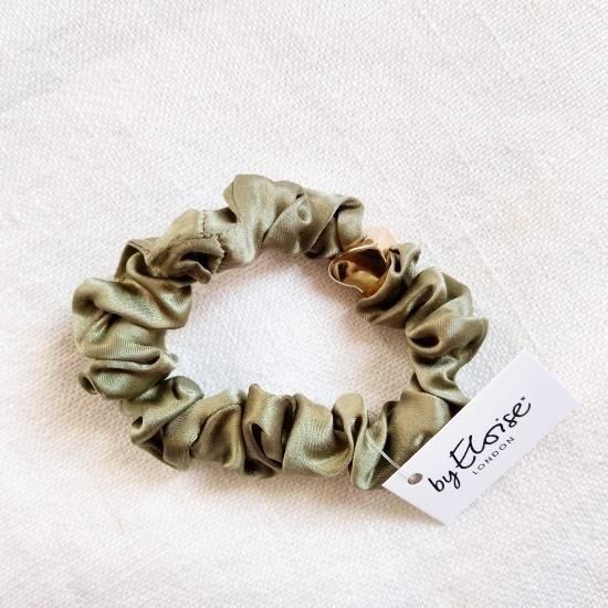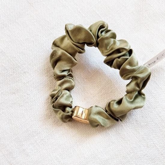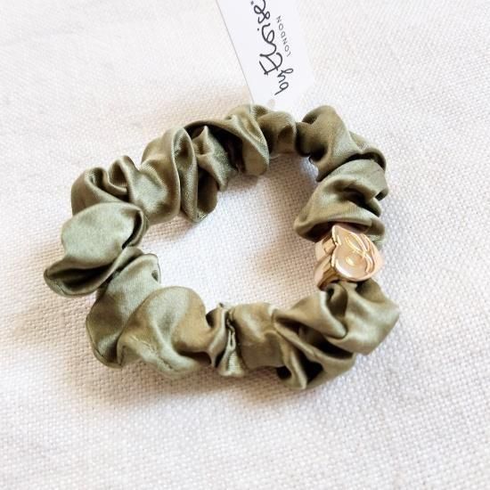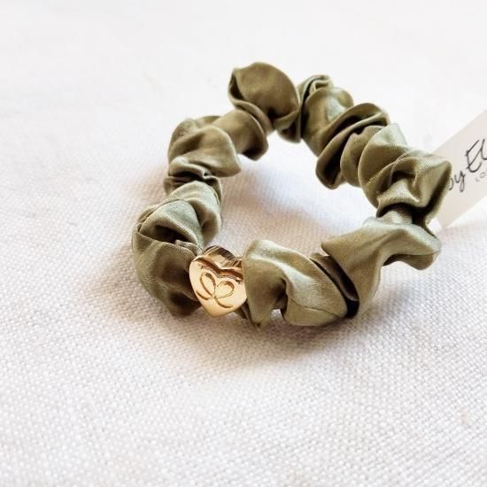 【期間限定12/31まで】by Eloise 「Gold Heart Silk Scrunchie Olive Green」 ヘアゴム 英国バイエロイーズ